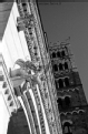 [Lucca : duomo di San Martino : scorcio dal basso della facciata e del campanile : 2 agosto 2000 (CPR 134)]