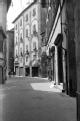Scorcio di via Fillungo nel tratto compreso tra via Fontana e via San Giorgio. Da sinistra, si notano le vetrine con le saracinesche abbassate dell'oreficeria-gioielleria Pellegrini, della merceria Vattuone e della cartoleria-tabacchi Marchi.
