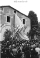 [Lucca : Gignano di Brancoli : sagra del balloccioro : la folla dei partecipanti davanti ad un casolare, ad una finestra del quale è fissato il pallone di una mongolfiera, in fase di riempimento d'aria : 24 ottobre 1976 (CPR 911)]