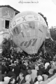 [Lucca : Gignano di Brancoli : sagra del balloccioro : la folla dei partecipanti davanti ad un casolare, ad una finestra del quale è fissato il pallone di una mongolfiera, in fase di riempimento d'aria : 24 ottobre 1976 (CPR 915)]