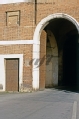 [Lucca : Porta San Donato nuova : porzione della facciata esterna, con il fornice centrale e l'ingresso pedonale chiuso con portone in ferro bullonato : ca. settembre - ottobre 1996 (CPS 580)]