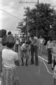 [Lucca : Porcari : Rughi : sagra dei cialdoni e del vino : uomo bendato per un gioco a percorso : settembre 1976 (CPR 2969)]