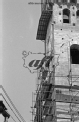 [Lucca : Torre delle Ore : veduta della parte superiore durante i lavori di restauro, con impalcature e operai al lavoro : ca. giugno 1979 (CPR 3941)]