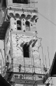 [Lucca : Torre delle Ore : veduta della parte superiore durante i lavori di restauro, con impalcature e operai al lavoro : ca. giugno 1979 (CPR 3946)]