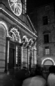 [Lucca : via Fillungo : veduta di una porzione della facciata della chiesa di San Cristoforo decorata con i lumini di cera per la luminara di Santa Croce (EGR 5965)]