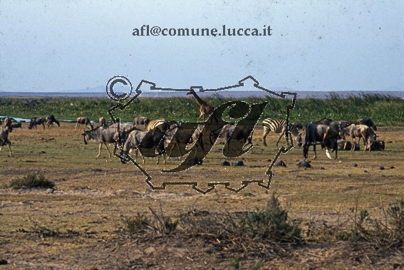 [Cameroun (Africa) : Parco nazionale di Waza : paesaggio con giraffa, zebre e gnu : luglio 1998 (RGS 6161)]