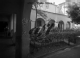 [Lucca : Ente Comunale di Assistenza in piazza dei Servi angolo via delle Trombe : ricovero di mendicità gestito dalle suore domenicane nei locali dell'ex convento dei Serviti : monaca intenta ad annaffiare le piante nel giardino (EGN 657)]