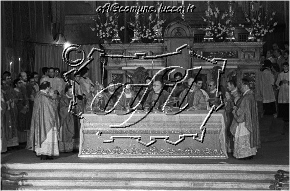[Lucca : duomo di San Martino : celebrazione della liturgia conclusiva della processione della Santa Croce, presieduta dall'arcivescovo monsignor Giuliano Agresti : 13 settembre 1982 (CPR 4169)]