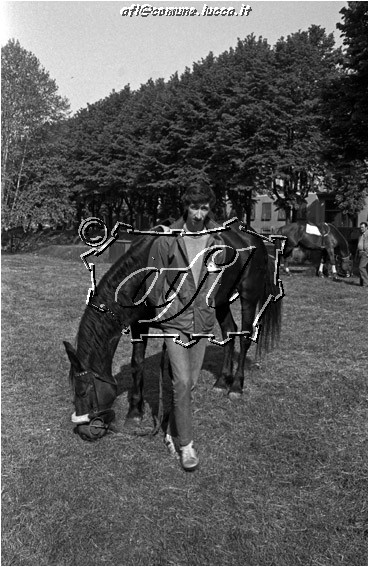 [Lucca : manifestazione equestre : allevatore con cavallo sugli spalti delle Mura urbane : maggio 1982 (CPR 4176)]