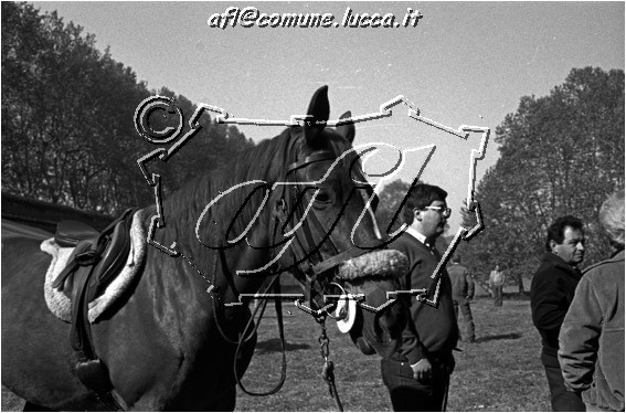 [Lucca : manifestazione equestre : cavallo sugli spalti delle Mura urbane : maggio 1982 (CPR 4177)]
