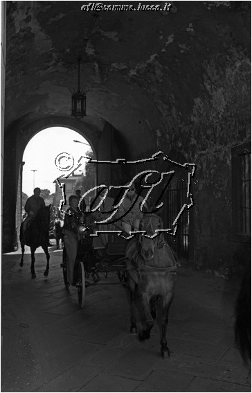 [Lucca : manifestazione equestre : carrozza trainata da un cavallo in ingresso da Porta Elisa : maggio 1982 (CPR 4186)]