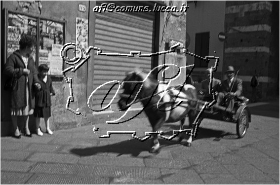 [Lucca : manifestazione equestre : calesse in via Santa Croce : maggio 1982 (CPR 4192)]