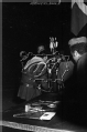 [Lucca : Palio di Santa Croce per la Festa della Santa Croce nel Cortile degli Svizzeri : balestriere con la "brocca" al tavolo del collegio giudicante : ca. 12 settembre 1976 (CPR 4676)]