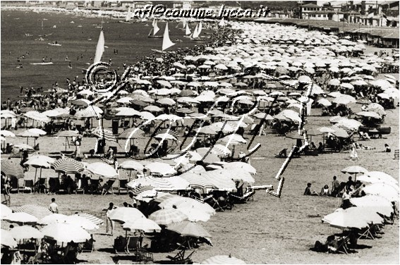 [Viareggio : veduta della spiaggia con distesa di ombrelloni nella stagione estiva : 1963 (MPF 153)