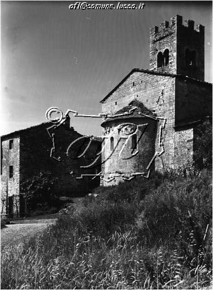 [Lucca : Borgo a Mozzano : Cerreto : pieve di San Giovanni Battista : facciata tergale e campanile : ca. 1967 (UDN 376)]