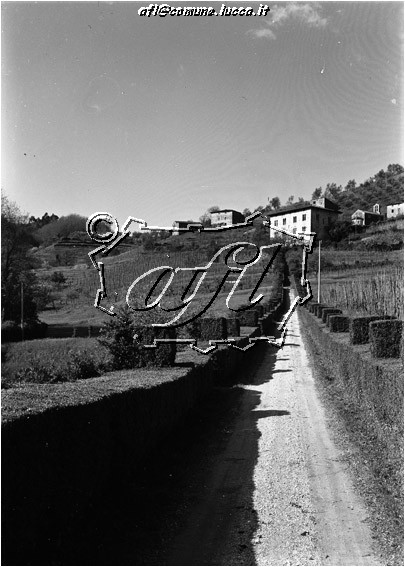 [Lucca : Pescaglia : San Martino in Freddana : scorcio paesaggistico con il "palazzaccio" oggi Introini : ca. 1967 (UDN 393)]
