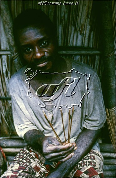 [Cameroun (Africa) : Kribi : accampamento di Pigmei Ba-Binga : uomo con freccette avvelenate per la caccia : luglio 1998 (RGS 7319)]