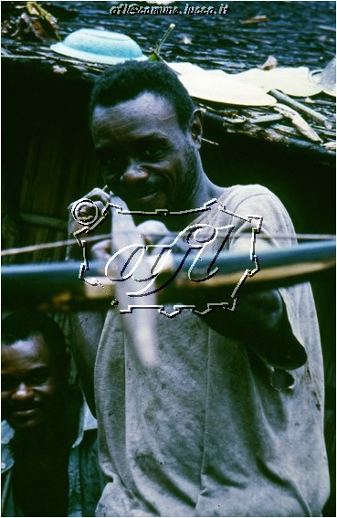 [Cameroun (Africa) : Kribi : accampamento di Pigmei Ba-Binga : uomo che mostra il funzionamento della balestra utilizzata per la caccia : luglio 1998 (RGS 7322)]