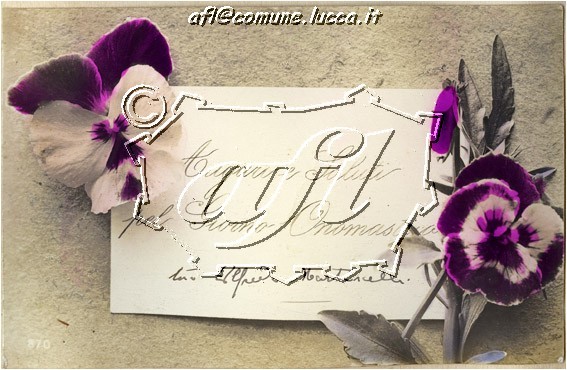 [Cartolina di auguri per il giorno onomastico con viole del pensiero (JMF 3139)