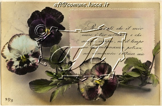 [Cartolina con viola del pensiero e messaggio d'amore (JMF 3159)