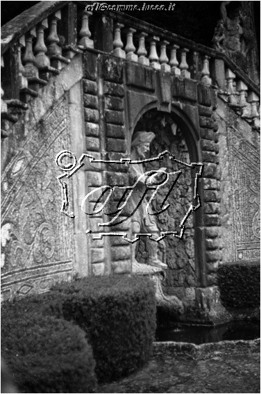 [Pescia : Collodi : Villa Garzoni poi Gardi : il giardino : grotta sottostante le rampe delle scale dell'ultimo ripiano, con statua raffigurante l'"Uomo col tacchino" (MPR 407)