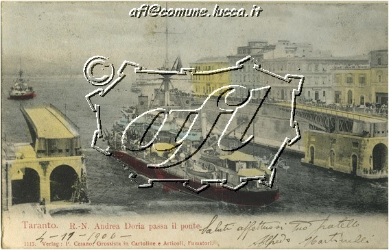 [Taranto : la Regia Nave "Andrea Doria" attraversa il canale all'altezza del ponte girevole (JMF 3304)