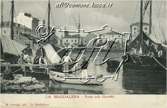 La Maddalena : Porto cala Gavetta ; [Olbia : La Maddalena : pescatori nel porto di Cala Gavetta (JMF 3325)