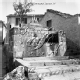 [Lucca : Bagni di Lucca : Montefegatesi : fontana in pietra sormontata dal simbolo del paese in piazza XX Settembre : 1965 (EGR 27049)]