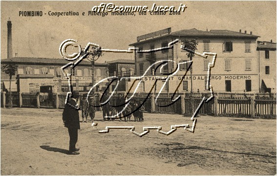 Piombino : Cooperativa e Albergo moderno, via Emilio Zola : [il Grand Hotel Moderno in via Carlo Pisacane, angolo Corso Italia : ca. 1910 (VAF 3503)]