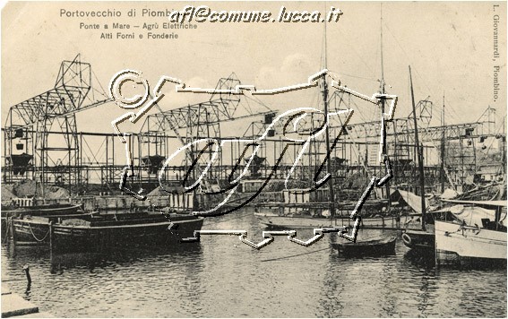 Portovecchio di Piombino : Ponte a Mare : Agrù Elettriche Alti Forni e Fonderie : [ca. 1909 (VAF 3530)]