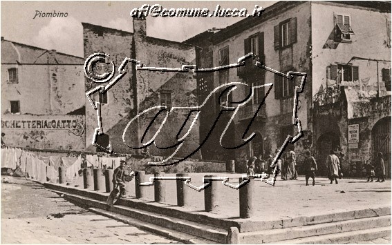 Piombino : Piazza Francesco Ferrer [ovvero piazza dei Grani, con l'insegna della fiaschetteria "Il Gatto" : ca. 1910 (VAF 3516)]