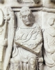 [Lucca : chiesa di San Frediano : interno : fonte battesimale : particolare della decorazione scultorea della vasca, con raffigurazione di Mosè che affida ad Aronne le tavole della Legge (UDS 98)]