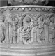 [Lucca : chiesa di San Frediano : interno : fonte battesimale : particolare della decorazione scultorea della vasca, con raffigurazione del Buon Pastore e personaggi simbolici (UDR 4279)]