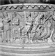 [Lucca : chiesa di San Frediano : interno : fonte battesimale : particolare della decorazione scultorea della vasca, con raffigurazione della figlia del Faraone assisa sul trono e di Mosè durante il prodigio della verga trasformata in serpente (UDR 4287)]