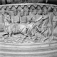 [Lucca : chiesa di San Frediano : interno : fonte battesimale : particolare della decorazione scultorea della vasca, con raffigurazione del racconto biblico del passaggio del Mar Rosso (UDR 4302)]
