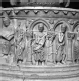 [Lucca : chiesa di San Frediano : interno : fonte battesimale : particolare della decorazione scultorea della vasca, con raffigurazione di Mosè che affida ad Aronne le tavole delle Legge, e di personaggi simbolici (UDR 4317)]