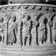 [Lucca : chiesa di San Frediano : interno : fonte battesimale : particolare della decorazione scultorea della vasca, con raffigurazione del Buon Pastore e personaggi simbolici (UDR 4319)]
