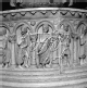 [Lucca : chiesa di San Frediano : interno : fonte battesimale : particolare della decorazione scultorea della vasca, con raffigurazione del Buon Pastore e personaggi simbolici (UDR 4323)]