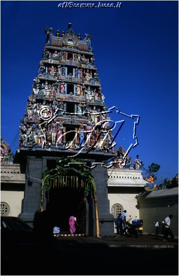 [Singapore : quartiere cinese di Chinatown : tempio indù di Sri Mariamman : la torre d'ingresso : ottobre 1987 (RGS 8023)]