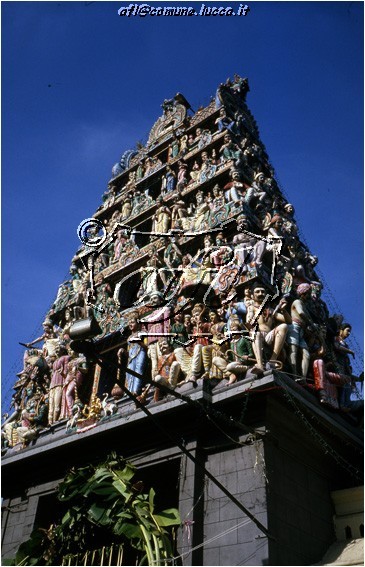 [Singapore : quartiere cinese di Chinatown : tempio indù di Sri Mariamman : la copertura della torre d'ingresso : ottobre 1987 (RGS 8024)]