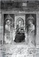 [Lucca : chiesa dei Santi Giovanni e Reparata : interno : transetto nord : affresco di Giuliano di Simone con Madonna in trono tra i Santi Nicola e Caterina : 1992 (LGP 40)]