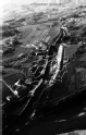 [Lucca : Monte San Quirico : veduta aerea con il torrente Freddana nel punto di confluenza con il fiume Serchio e i lavori per la costruzione del ponte del nuovo tratto della SP1 via per Camaiore : ca. 1965-1968 (UTR 5181)]