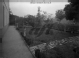 Piccolo giardino delimitato da cordolo in cemento con abete e piante basse. La proprietà è a sua volta delimitata da un muro di cinta che si affaccia su una vallata.