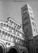 [Lucca : duomo di San Martino : scorcio della facciata e del campanile (EGN 1400)]