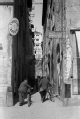 A destra della foto, sul muro, si nota il cartellone pubblicitario del negozio di tessuti "Vangelisti" ; sul fondo della foto si nota la chiesa di San Michele in foro.