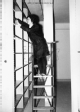 [Lucca : stabilimento tessile Cucirini Cantoni Coats : reparto Magazzino Spedizioni : dipendente impegnata nella sistemazione della merce negli scaffali (CCF 639)