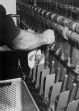 [Lucca : stabilimento filati Cucirini Cantoni Coats in località Acquacalda : reparto Ritorcitura : particolare dell'operazione di levatura delle bobine dal torcitoio : ca. 1974 (CCF 2243)