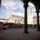 [Lucca : veduta dalla loggia del Palazzo del Potestà della chiesa di San Michele e dell'omonima piazza con i banchi per la vendita in occasione della festa della Santa Croce (EGR 3525)]