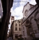 La chiesa di San Cristoforo, già documentata nel 1053, fu ricostruita alla fine del sec. XII. "Sede nel sec. XII dei consoli delle Cause lucchesi, a cominciare dal secolo successivo appartenne all'Università dei Mercanti. Sulla facciata a destra della porta maggiore, ancora restano le sbarre di ferro che fissavano per i telai lucchesi la lunghezza dei pettini e dei tempiali [...]. Nella seconda metà del sec. XIV si compiva la parte superiore della facciata, con il grande rosone centrale e gli archetti acuti pensili sotto lo spiovente dei tetti". Cfr.: Belli Barsali I., "Lucca Guida...", pp. 149-150.