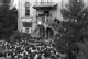 [Lucca : stabilimento filati Cucirini Cantoni Coats : manifestazione fascista con comizio : veduta del terrazzo con gli oratori e della folla dei presenti (CCR 1432)